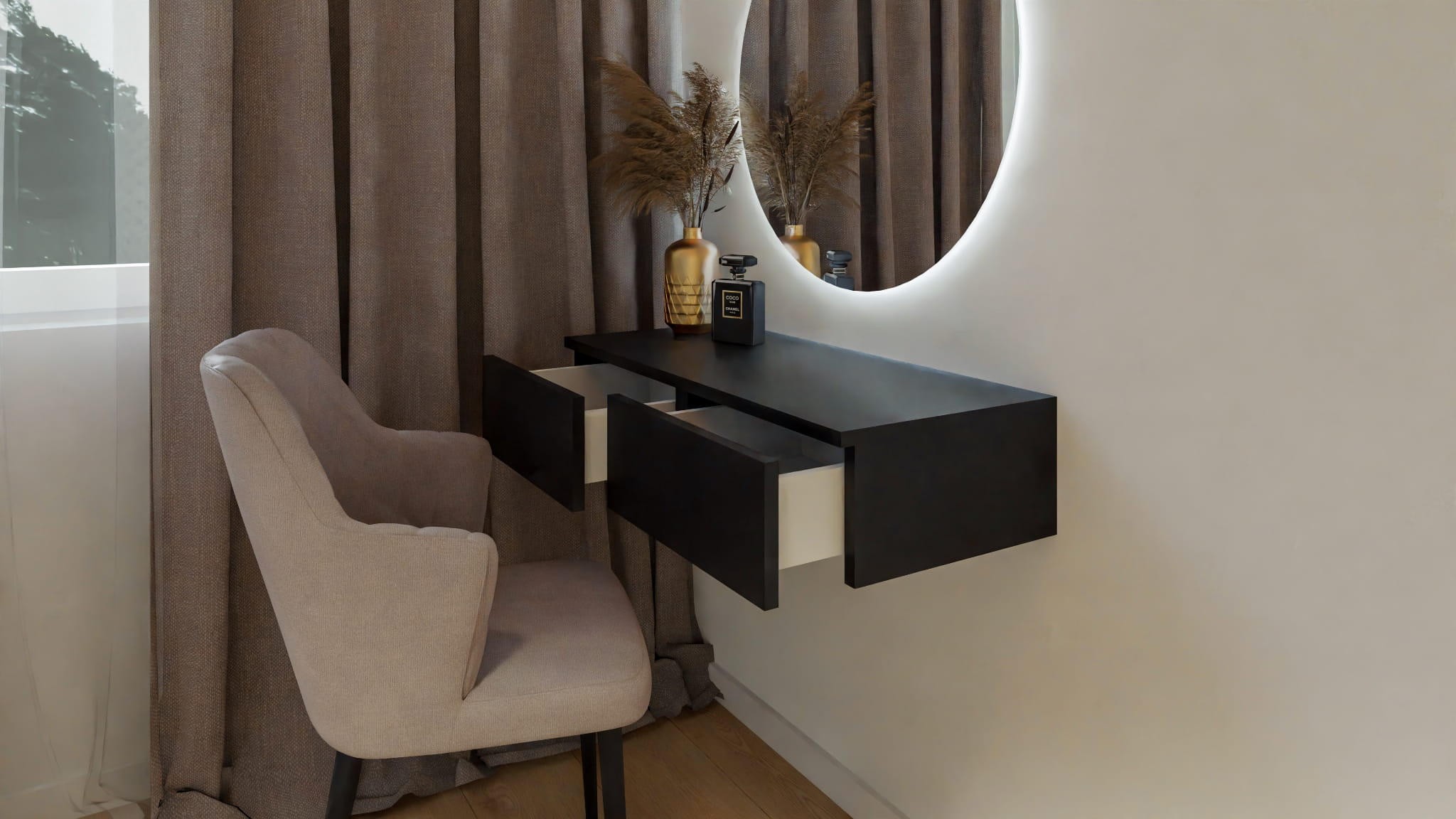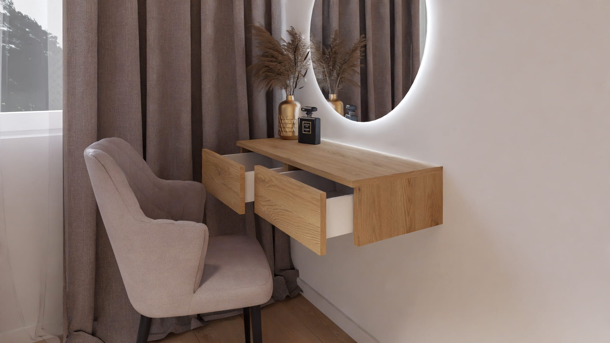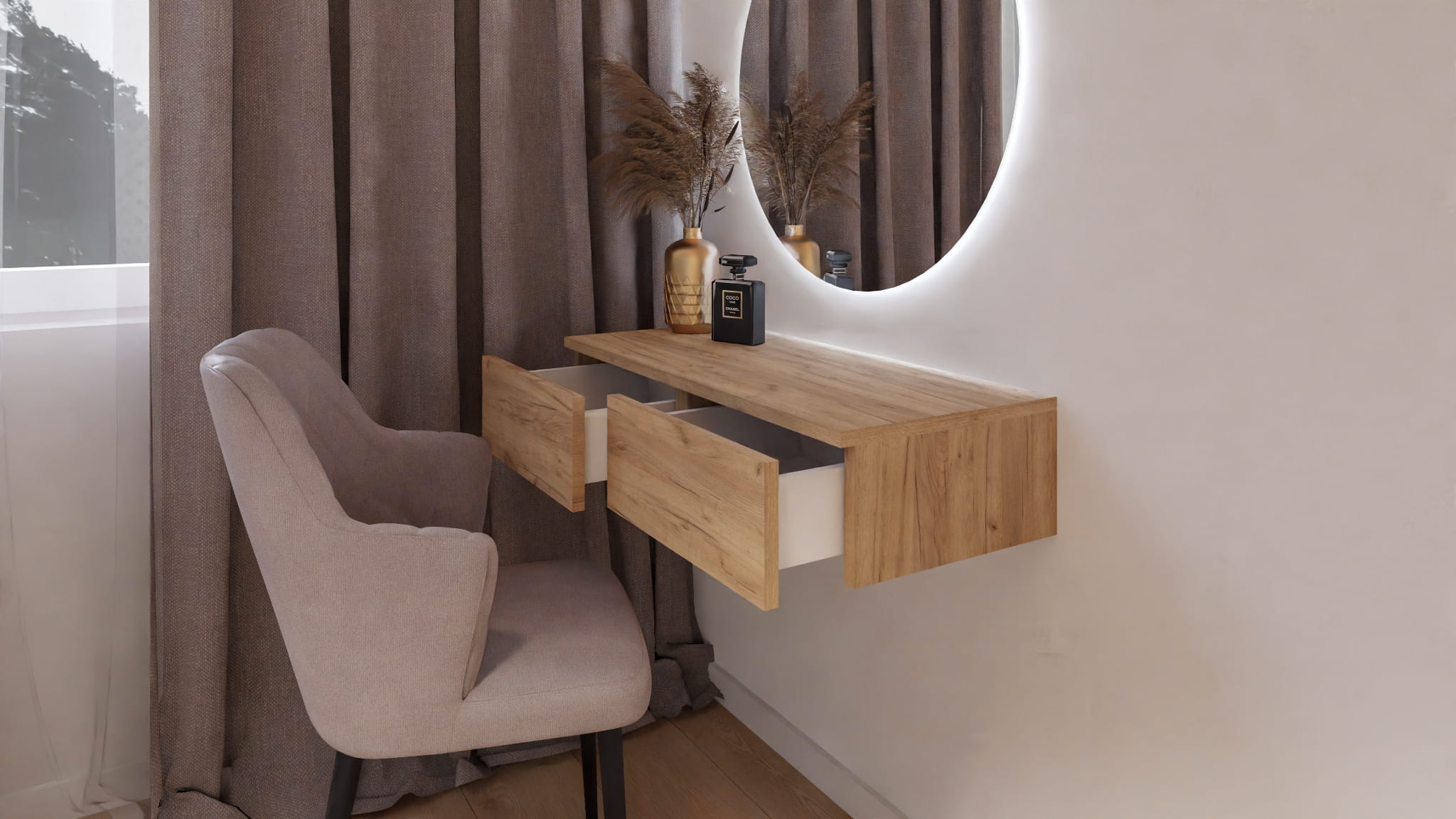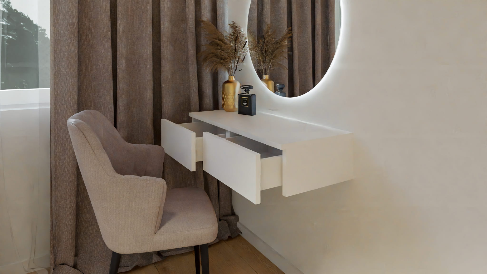 Nowoczesna toaletka wisząca z dolnym uchwytem.
